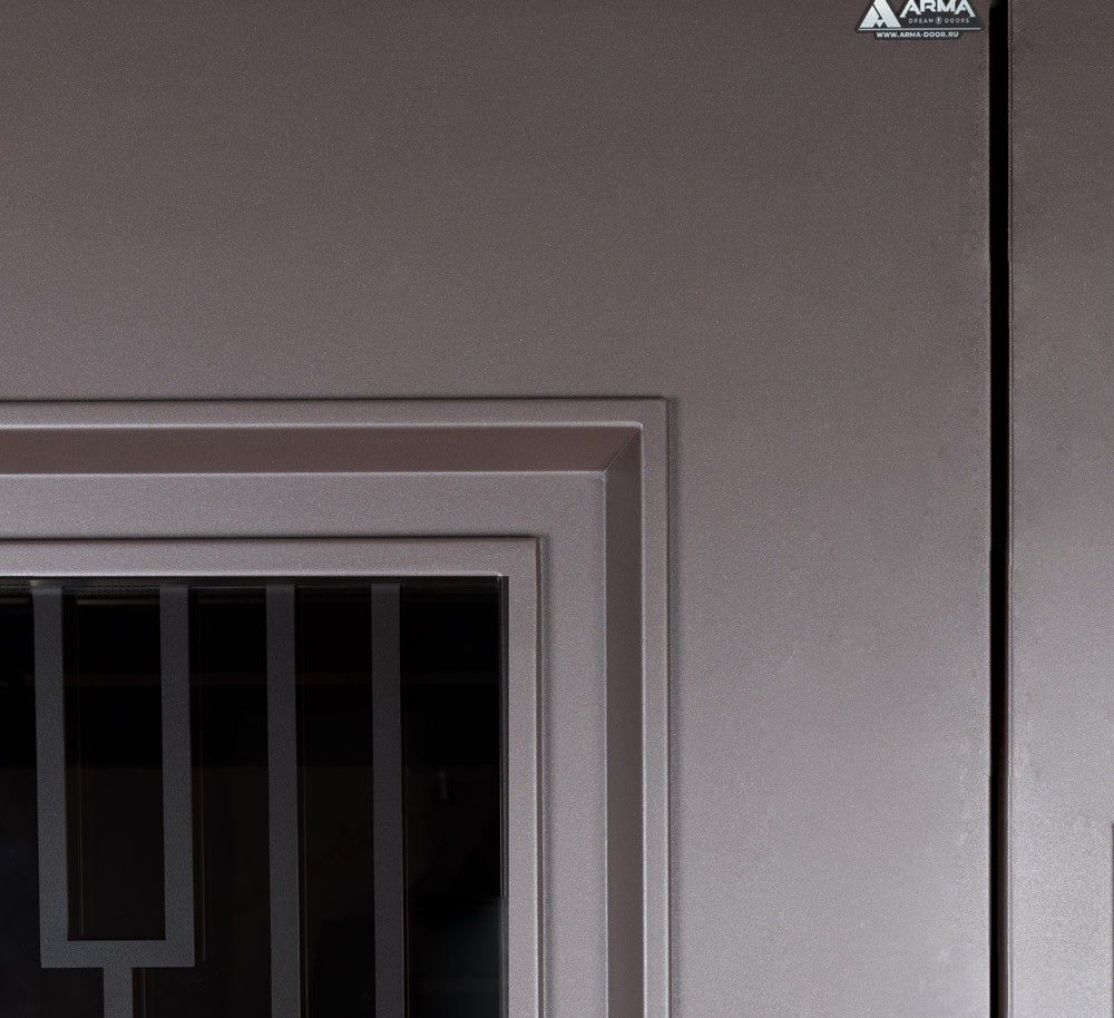 СБ-1 с окном, стеклопакет 2-х камерный, тонировка бронза зеркальная + резка Самурай внутри стеклопакета в цвет двери